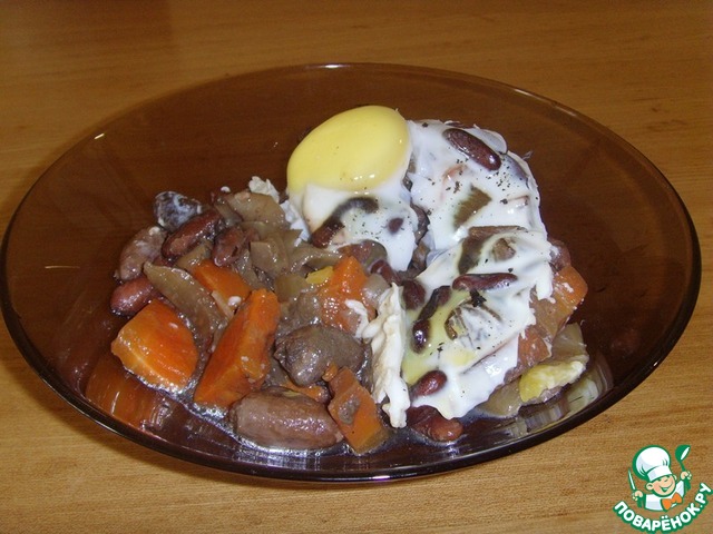 Пэчэня. Печено-тушеная вкуснотища, получается, как в печи. Готовить очень просто и понятно, но требует времени на духовку. Вариантов этого блюда множество, с фасолью делают в основном в Прикарпатье.