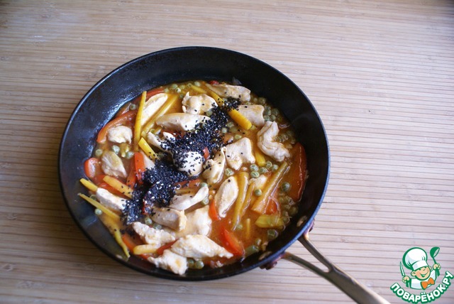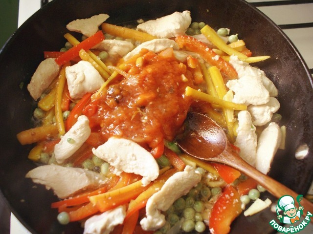 ну не вок это.. просто обжаренная курица с овощами. технология приготовления в воке была бы следующей: