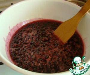 Ягоды с водой аккуратно помешиваем деревянной лопаточкой.