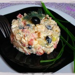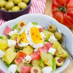 Обожаю картофель во всех видах, особенно вареный во всех салатах. Перепробовав массу комбинаций картофеля в салатах разных стран, я нашел свою формулу. Креативные комментарии приветствуются, добавить колбасу можно, но уже не то, не так свежо.