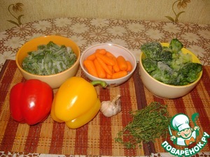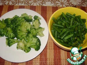 Брокколи, фасоль и морковь отварить в подсоленной воде отдельно друг от друга до готовности.