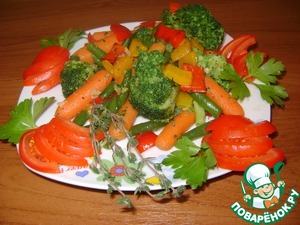 По-летнему яркий и лёгкий овощной гарнир с пикантной ноткой чеснока и тимьяна:)