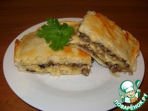 Рецепт «Слоёнка с грибами, луком и сыром»: