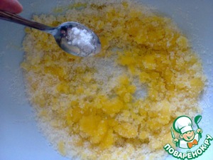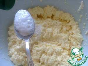 После этого добавить гашеную уксусом соду (соды 1/2 ч. л. и уксуса добавить до полной чайной ложки)
