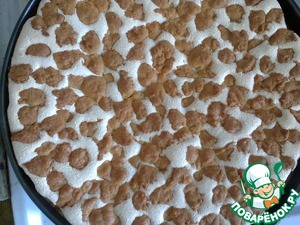 Оставшееся тесто разбросать сверху на белки маленькими кусочками