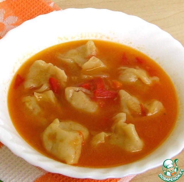 Дюшбара - блюдо азербайджанской кухни, представляет собой суп на прозрачном бараньем бульоне с мелкими пельмешками с фаршем из баранины. Мой рецепт отличается от оригинала: во-первых, я заменила баранину более привычным нам фаршем из говядины и свинины, а во-вторых, добавила в бульон овощи.