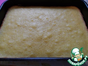 Готовый бисквит прокалываем зубочисткой и заливаем равномерно нашей пропиткой. Оставляем его пока не остынет. Разрезаем и достаем из формы.