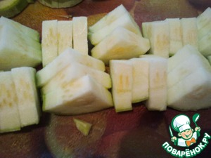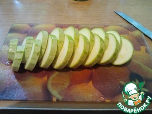 Кабачок очистить и нарезать кружочками толщиной 1 см.