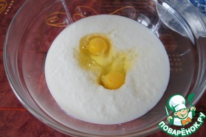 Простоквашу взбить с яйцами, сахаром и солью.