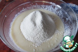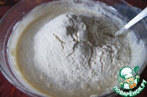 Просеять примерно треть муки и перемешать.