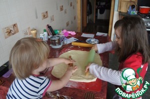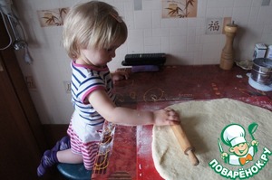 Раскатать тесто в прямоугольник... Тут и помощница подоспела...