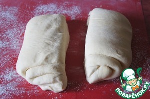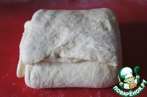 Сложить конвертом, снова раскатать, присыпать 2-й частью соды.