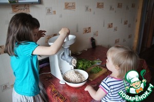 Мясо пропустить через мясорубку. И тут без моих помощников-мешалок не обошлось!!! Ну, куда же я без них!