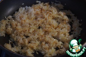 Лук измельчить и поджарить на растительном масле до золотистого цвета,