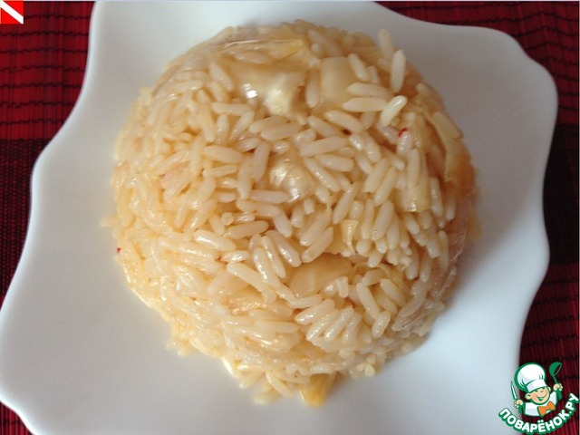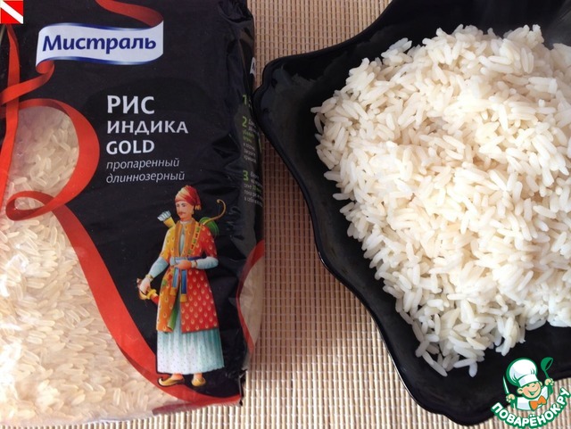 Отвариваем рис ( я варила согласно инструкции на упаковке: заливаем рис водой в соотношении 1:2, доводим до кипения, убавляем огонь и закрываем крышкой. Варим 30 минут на медленном огне)