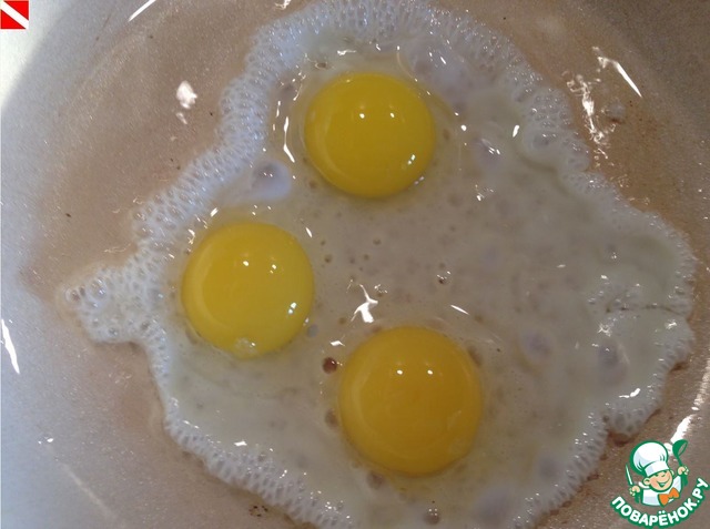В Корее есть два варианта подачи блюда. Первый: отдельно поджариваем яйца (на одну порцию 1-2 яйца - у меня 3 перепелинных)