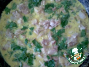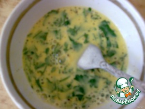 Яйцо взбить с солью, перцем, приправой, петрушкой, добавить молоко.