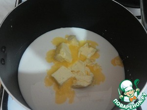 Для приготовления теста нарезать масло кусочками, В кастрюлю налить воду, молоко, положить масло и соль. При постоянном помешивании довести до кипения.