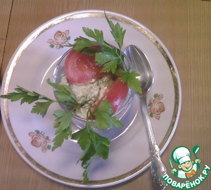 Такой салат, несмотря на простоту приготовления, может стать украшением стола, если положить его в нарядный салатник или подать порционно (например, у меня в стаканах для виски 230 мл).