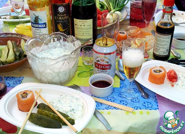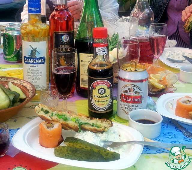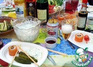Здесь я в гостях у приятельницы со своими роллами и соусом "Киккоман".
