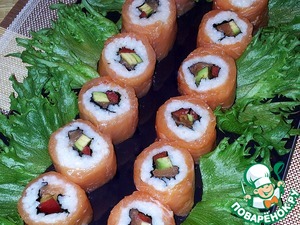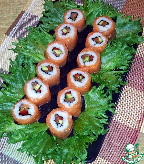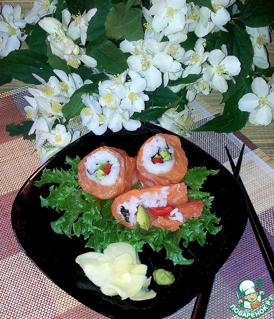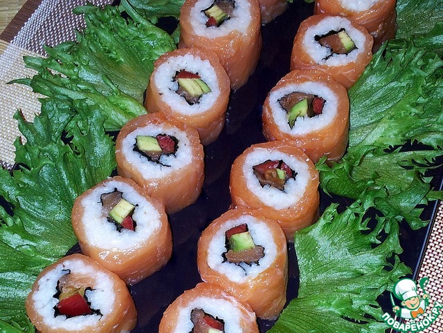Рецепт «Роллы с лососем, авокадо и болгарским перцем»: