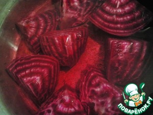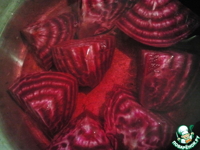 А зачем свеклу очищать от кожуры и резать на кусочки? Из нее ведь весь цвет в воду уйдет.