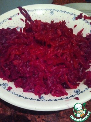 • Трем на крупной терке свеклу и отставляем.