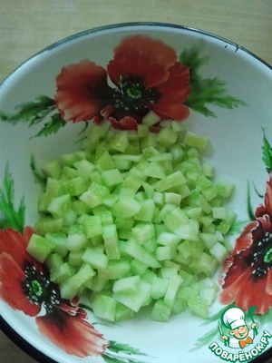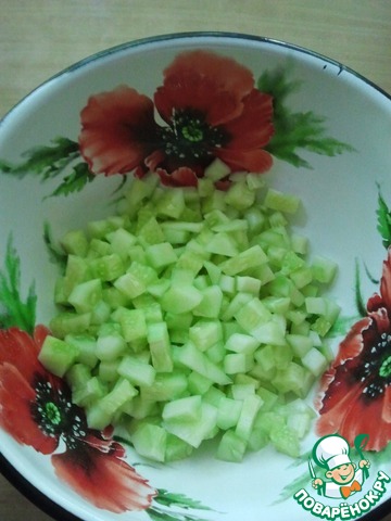 • Чистим огурец и нарезаем мелкими кубиками.