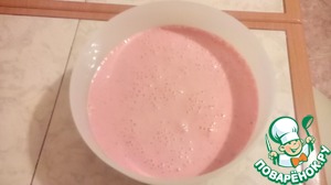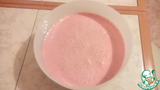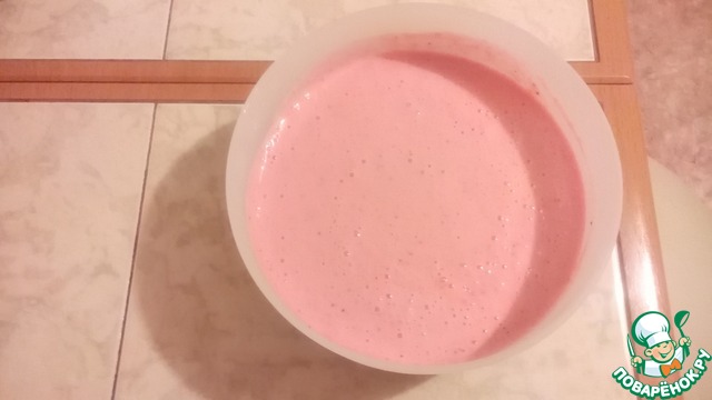 Перемешать клубничное пюре и сливки в форме и поставить в морозилку.