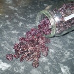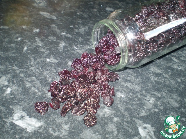 Насчет хранения – скажу честно – пока не знаю. Провожу эксперимент: половину вишни храню просто в кухонном шкафу, в плотно закрытой баночке, половину – в такой же баночке в холодильнике. Думаю, проблем с хранением быть не должно, поскольку влаги в этом сухофрукте осталось очень мало.