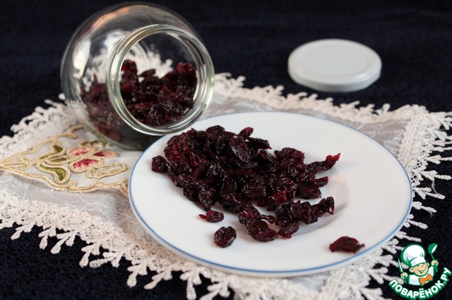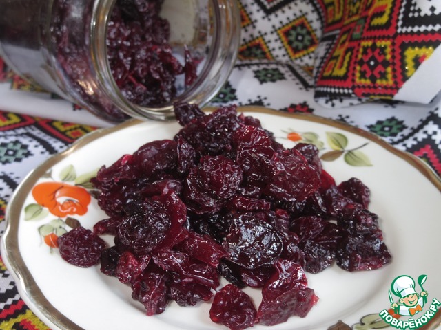 Вот, собственно, и все. Оставьте вишню на неделю-две в покое. Время сушки зависит от температуры и влажности. Если есть возможность вынести ее на солнышко, процесс пойдет быстрее. Да, побеспокоить ее придется пару раз – перевернуть каждую вишенку через день-два. Вот такая стала моя вишенка через неделю.