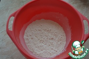 Кукурузную и пшеничную муку просеять вместе с дрожжами.