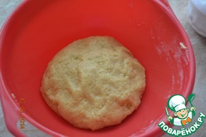 По истечении времени сделать из теста жгут, нарезать небольшими кусочками, раскатать в лепешки.