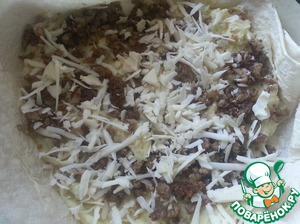 Берём форму, смазываем дно маслом и складываем армянский лаваш. этот слой намазать майонезно-масляной смесью. Сначала положим пюре, а затем фарш