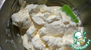 Добавьте взбитые сливки и аккуратно перемешайте лопаточкой.