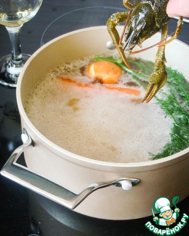 * У меня раки - не частый гость, поэтому я не экспериментировала с бульоном, и по привычке бросила в него морковь, луковицу, укроп, душистый перец, соль и добавила стакан пива. Думаю в другой раз, стоит попробовать бульон, например, с соевым соусом, лимоном и имбирем.