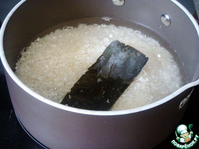 * Если у вас есть водоросли комбу - добавьте кусочек к рису при варке, они дают аромат. Также на кусочке комбу можно настаивать рисовый уксус для дальнейшей заправки риса.