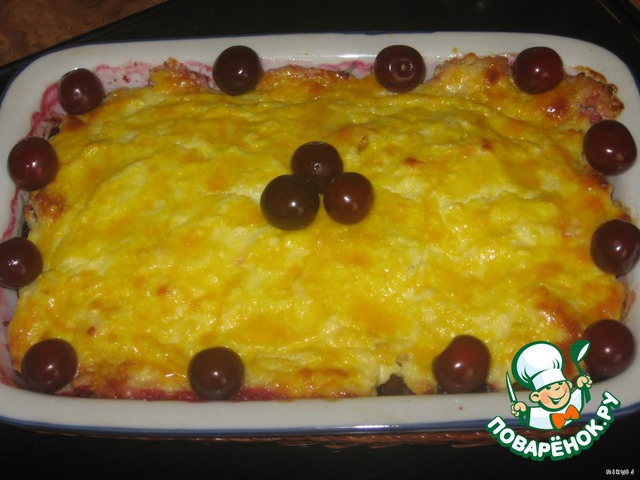 Вишня - первая скрипка данного блюда, ее неповторимая сочность и кислинка подчеркнута нежной творожной массой... Приготовить этот вкусный ансамбль совсем просто и быстро, отличная идея для воскресного завтрака...
