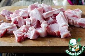 Мясо, у меня свиная шея, нарезать небольшими кусочками.