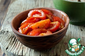 Переложить мясо в миску. А в сковороду положить помидоры черри и обжаривать их около 2-3 минут, аккуратно помешивая их. Переложить их в миску.