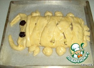 Смазываем все взбитым яйцом и выпекаем в духовке при 175-200 градусов до готовности.