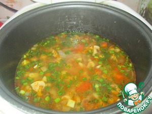В мультиварку опустить обжаренные овощи, соль, перец и варить до окончания программы.