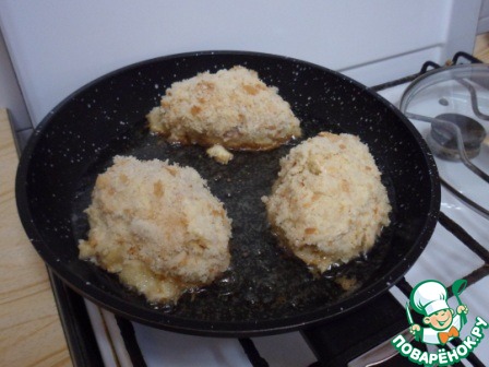 Каждую, заранее подготовленную котлету, обмакнуть в панировку так: кляр- хлебная крошка - получится такая "бочечка". Сформировать аккуратненькие котлетки.