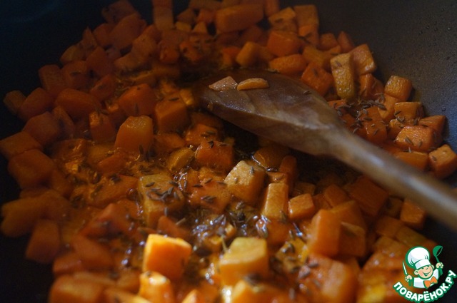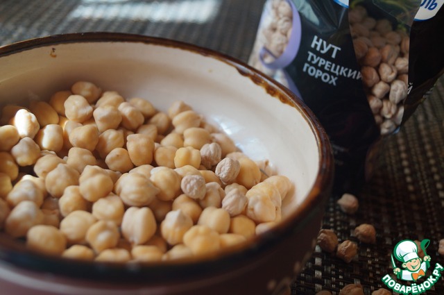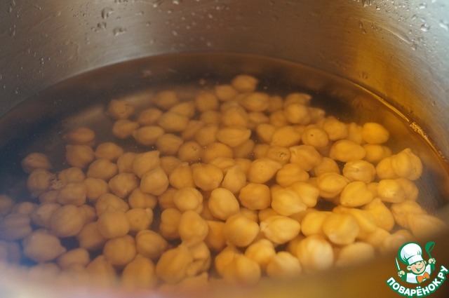 Одновременно ставим вариться нут на медленном огне. Варим почти до готовности. Почти до того момента, когда он понадобится.