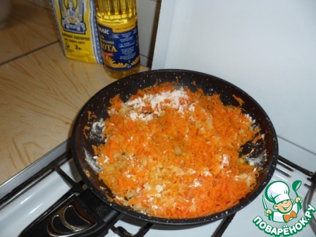 Мелко нарезать лук, морковь натереть на крупной терке.