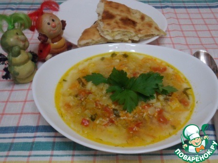 Лето... Жарко... Супчик легкий и вкусный, как раз подходит для летнего сезона. Готовится на отваре из свежих овощей, не сложен в приготовлении. Не претендую на оригинальность (на сайте нашла один подобный, но ингредиенты отличаются), а предлагаю отведать. Для разнообразия стоит попробовать!