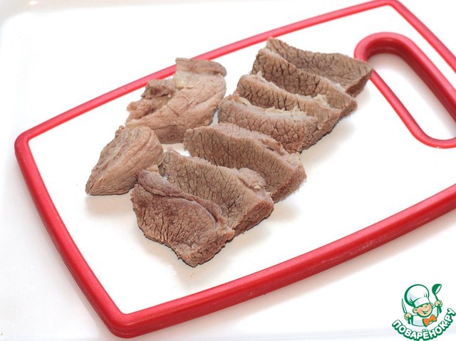 Мясо промыть, срезать сухожилия и пленки, положить в горячую воду и варить при слабом кипении. Соль и специи положить в бульон за 15–20 минут до готовности мяса.
