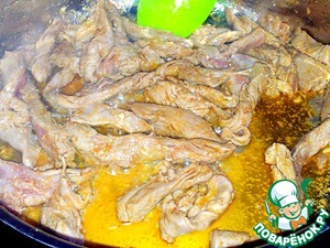 Обжарила мясо минут 15 в масле и добавила пасту "Красный Карри".