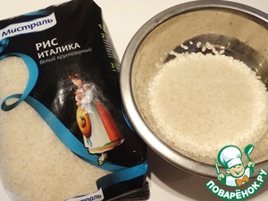 Для приготовления этого блюда нужен круглый рис. Я использовала рис Италика компании Мистраль. Рис хорошо промываю.