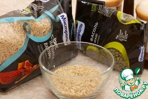Для этого рецепта использую рис коричневый длиннозерный «Индика Brown» и фасоль маш от Мистраль.